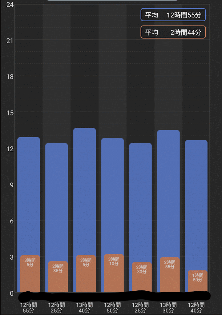 実際の睡眠時間の記録です。