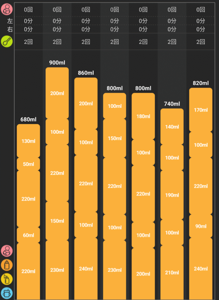 この時期は、離乳食+ミルク と 寝る前ミルクの間隔が狭くなっていたな…。